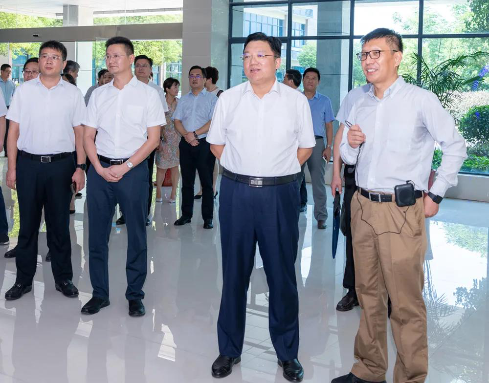 高南董事長接待區(qū)委領導,帶領海陵區(qū)企業(yè)家參觀云涌科技,并就上市經驗作分享。