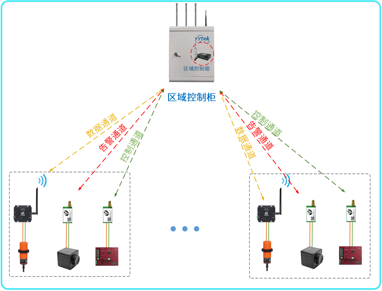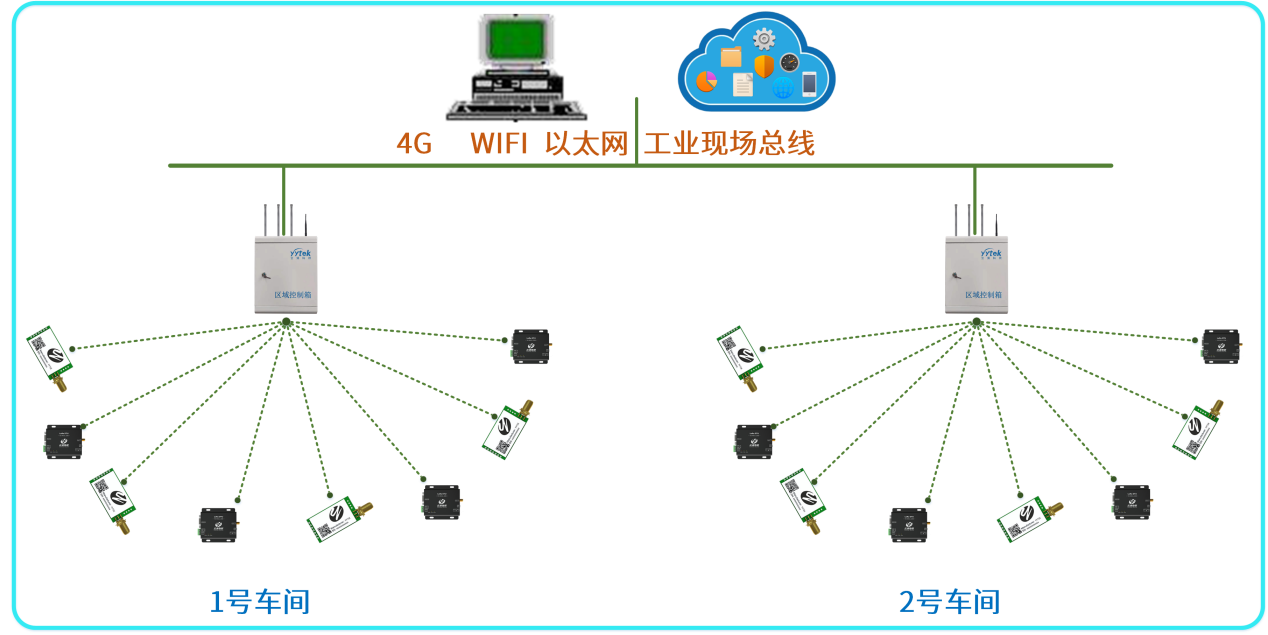 一個(gè)廠區(qū)可以配備多個(gè)區(qū)域控制箱,每個(gè)控制箱最多配備500-2000個(gè)設(shè)備節(jié)點(diǎn),每個(gè)區(qū)域柜都能與工業(yè)系統(tǒng)進(jìn)行對(duì)接,也可相互通訊;