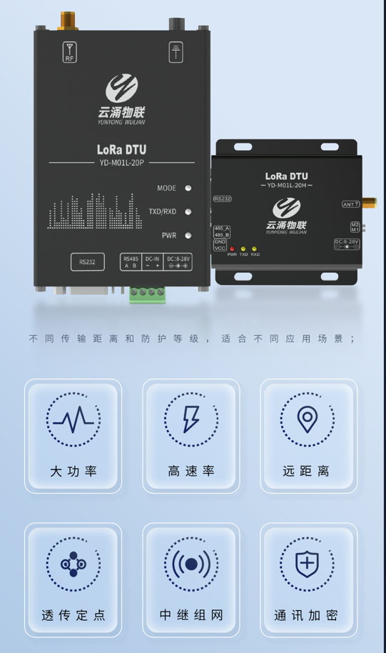 LoRa DTU:帶有RS485/232接口(綠端子/標(biāo)準(zhǔn)DB9),分為基礎(chǔ)款、增強(qiáng)款和工業(yè)款,不同傳輸距離和防護(hù)等級(jí),適合不同應(yīng)用場(chǎng)景;