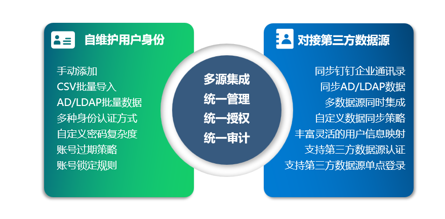 云涌遠程辦公方案既支持主流企業(yè)通訊錄系統(tǒng)的數據導入與同步,也支持自建用戶體系。實現了在一個平臺對企業(yè)人員、部門以及外協(xié)項目組的統(tǒng)一高效管理。同時系統(tǒng)提供多種用戶認證方式,全方位滿足各種需求場景。
