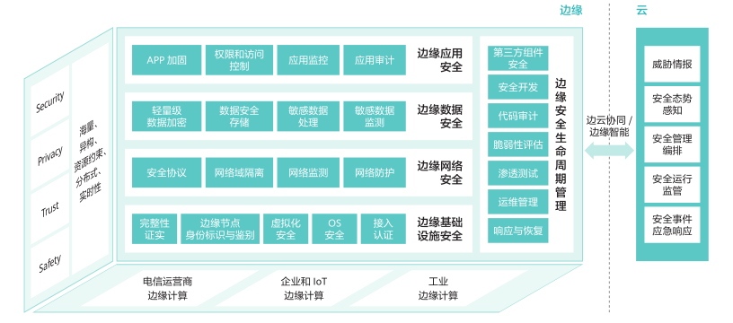 邊緣安全是邊緣計(jì)算的重要保障。邊緣安全涉及跨越云計(jì)算和邊緣計(jì)算縱深的安全防護(hù)體系,只有增強(qiáng)邊緣基礎(chǔ)設(shè)施、網(wǎng)絡(luò)、應(yīng)用、數(shù)據(jù)識(shí)別和抵抗各種安全威脅的能力,才能為邊緣計(jì)算產(chǎn)業(yè)的發(fā)展構(gòu)建安全可信環(huán)境。邊緣安全的核心價(jià)值體現(xiàn)在可以提供可信的基礎(chǔ)設(shè)施:主要包括計(jì)算、網(wǎng)絡(luò)、存儲(chǔ)類的物理資源和虛擬資源?;A(chǔ)設(shè)施是包含路徑、數(shù)據(jù)交互和處理模型的平臺(tái)面,可以應(yīng)對(duì)鏡像篡改、DDoS 攻擊、非授權(quán)通信訪問、端口入侵等安全威脅。