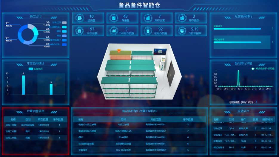 智能稱重貨柜:用于管理高價值備品備件,通過顯示模塊和定位指引,實現(xiàn)自助領用管理和信息同步管理。