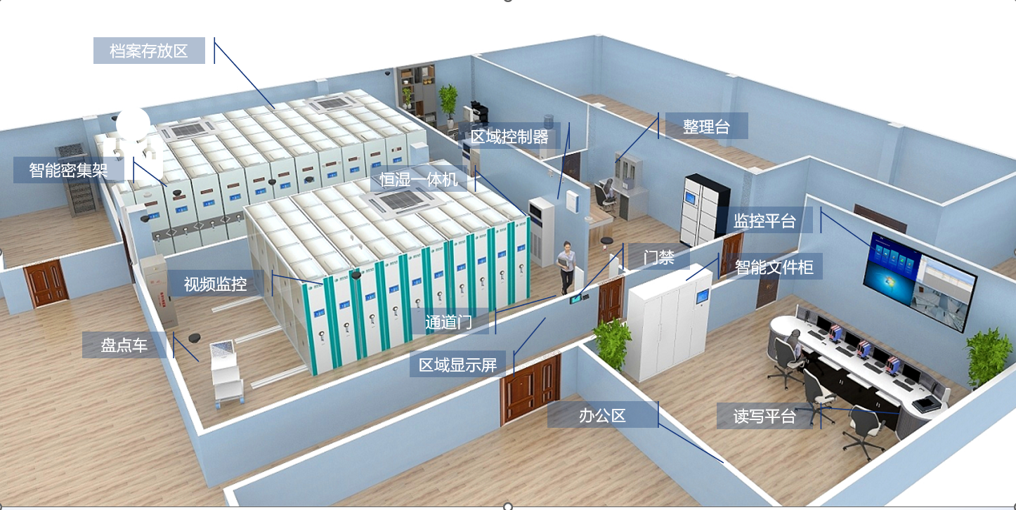 在互聯(lián)方面,云涌科技充分運(yùn)用物聯(lián)網(wǎng)、大數(shù)據(jù)等技術(shù),并依托豐富的行業(yè)知識(shí),在傳統(tǒng)檔案“十防”要求的基礎(chǔ)上,集成智能環(huán)境控制、智慧檔案管理,智慧安防、RFID射頻管理等系統(tǒng),打造了智慧檔案一體化管控平臺(tái),打破信息孤島,無(wú)論是不同部門(mén)之間,還是上下級(jí)單位之間,檔案資源都能實(shí)現(xiàn)互聯(lián)互通。