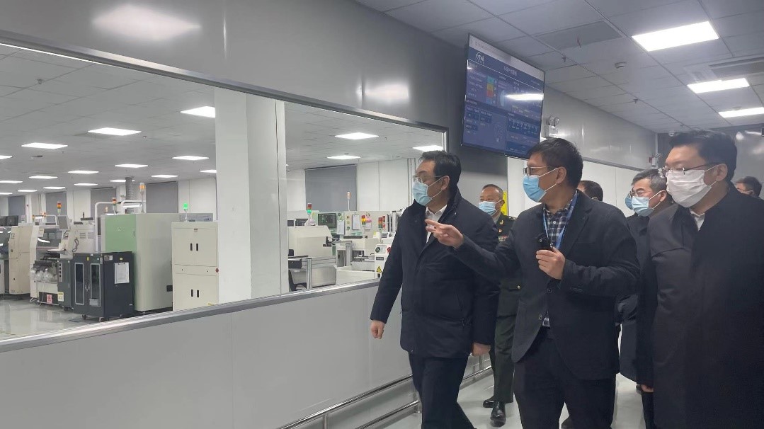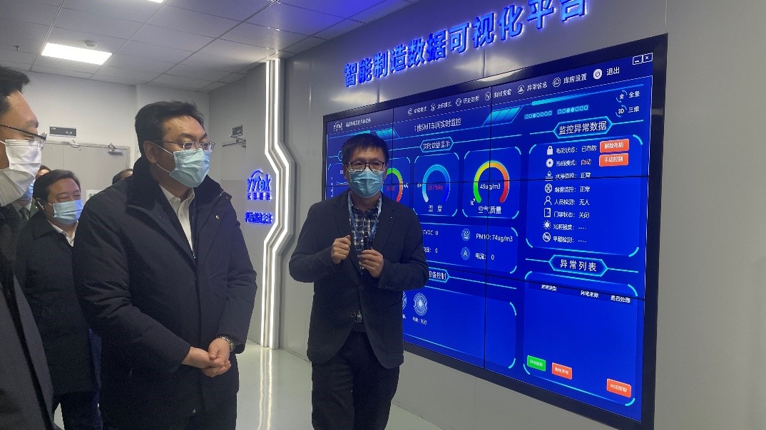 ? ? ? 隨后,朱書(shū)記等一行領(lǐng)導(dǎo)走進(jìn)我司智能制造車(chē)間進(jìn)行考察,高總重點(diǎn)介紹了公司SMT智能化生產(chǎn)線、“5G+AGV”搬運(yùn)機(jī)器人場(chǎng)景應(yīng)用等智能車(chē)間運(yùn)行的情況。朱書(shū)記對(duì)公司的發(fā)展以及制造中心的智能化水平給予了充分的肯定,并鼓勵(lì)公司借力資本市場(chǎng),繼續(xù)推進(jìn)科技創(chuàng)新,實(shí)現(xiàn)產(chǎn)品的高價(jià)值、高顏值、高效率,促進(jìn)云涌科技高質(zhì)量發(fā)展。