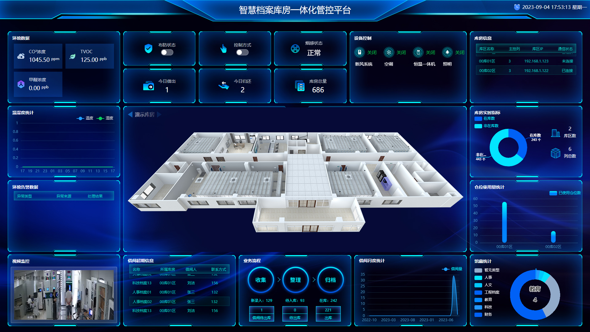 通過一套系統(tǒng)實現庫房內實體檔案管理設備、檔案存儲設備、檔案庫房環(huán)境監(jiān)控設備、檔案庫房安全防范設備等的統(tǒng)一管理。
